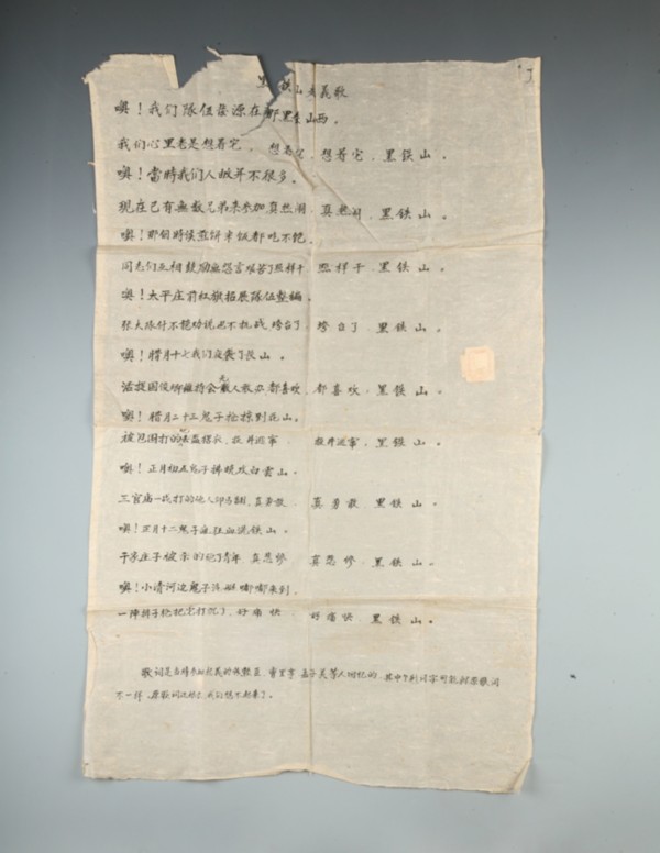 “黑铁山起义歌”歌词